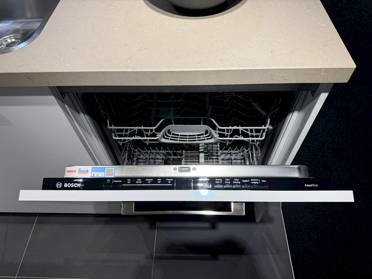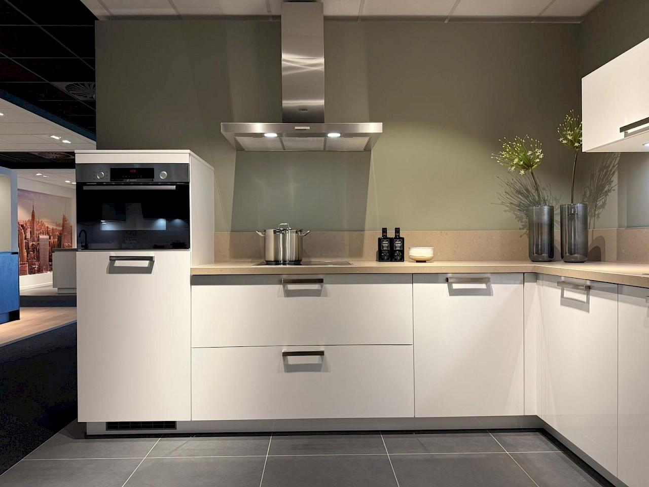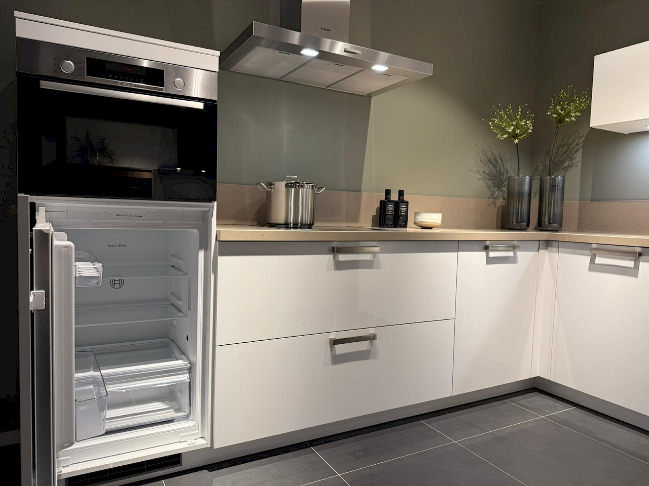Inclusief: Bosch koelkast, Bosch combimagnetron, Bosch inductiekookplaat, Bosch wandafzuigkap, Bosch vaatwasmachine