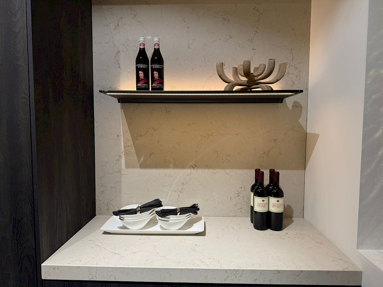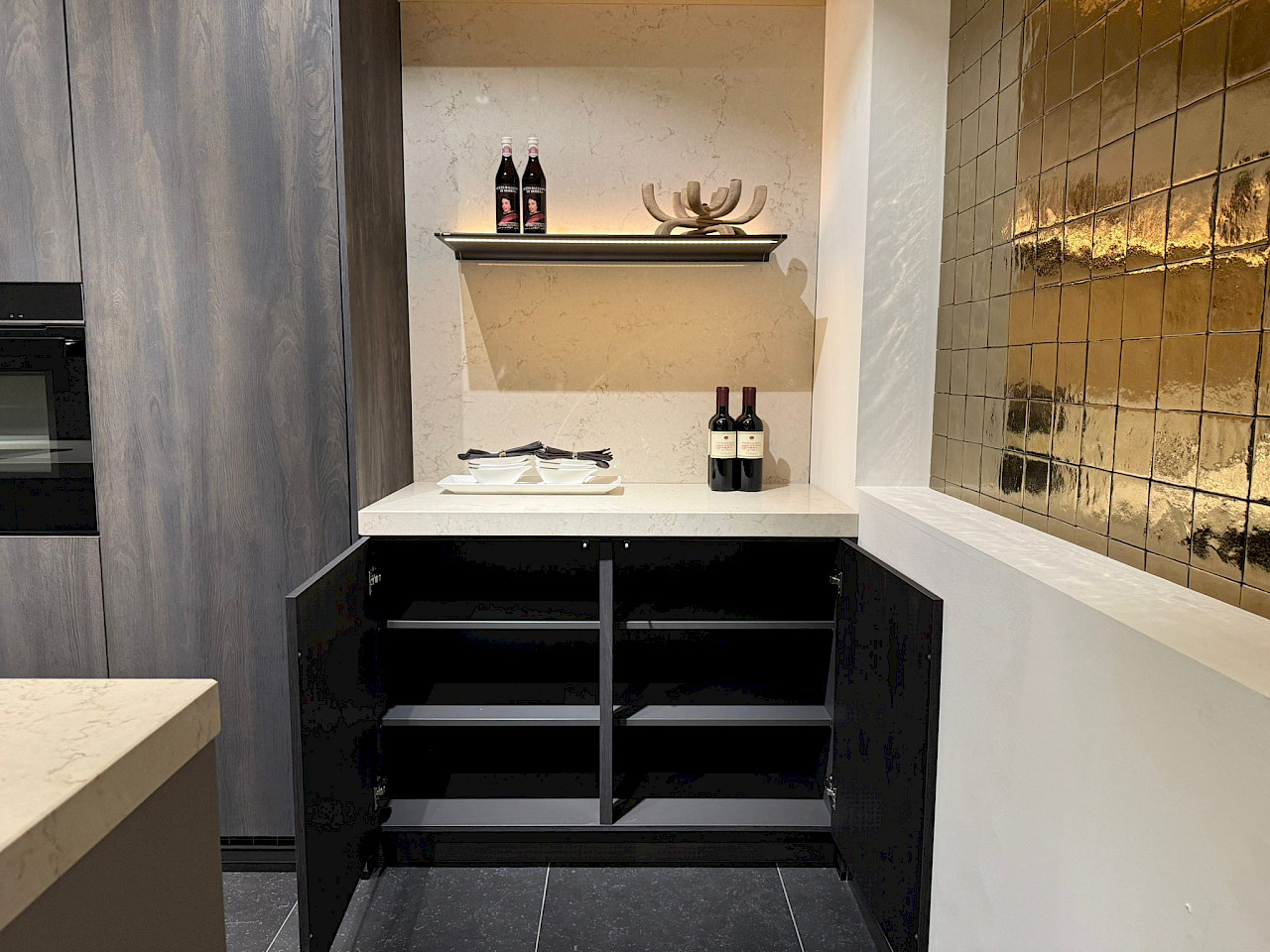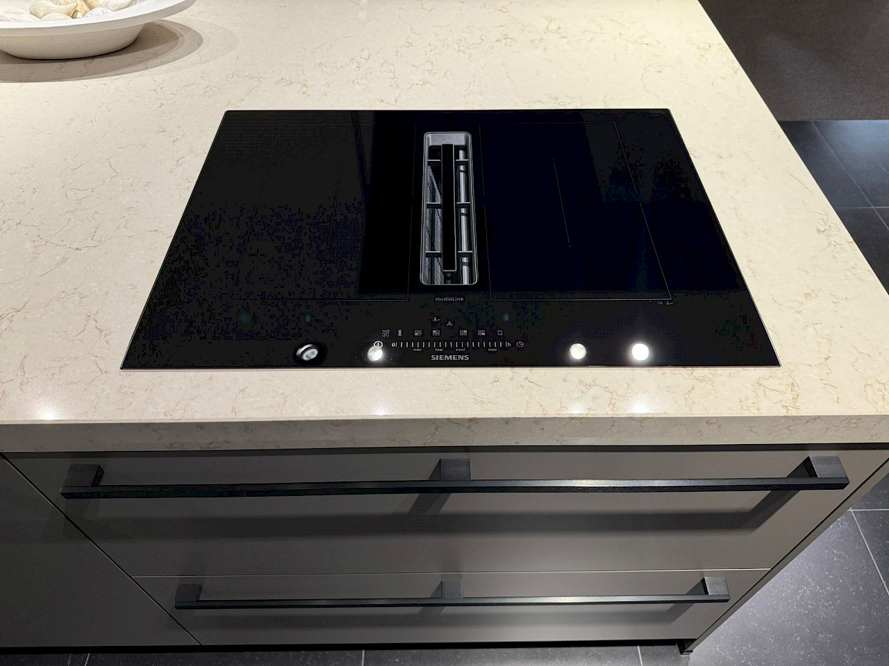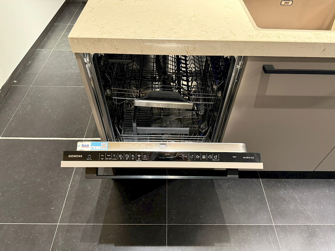 Inclusief: Siemens vrieskast, Siemens oven met stoomfunctie, Siemens koelkast, Siemens vaatwasmachine XXL, Siemens inductiekookplaat met afzuigsysteem, Siemens wijnklimaatkast, Novy Shelf