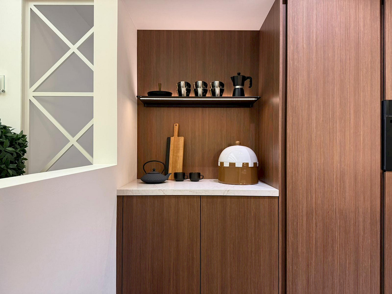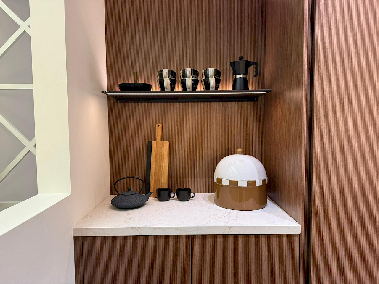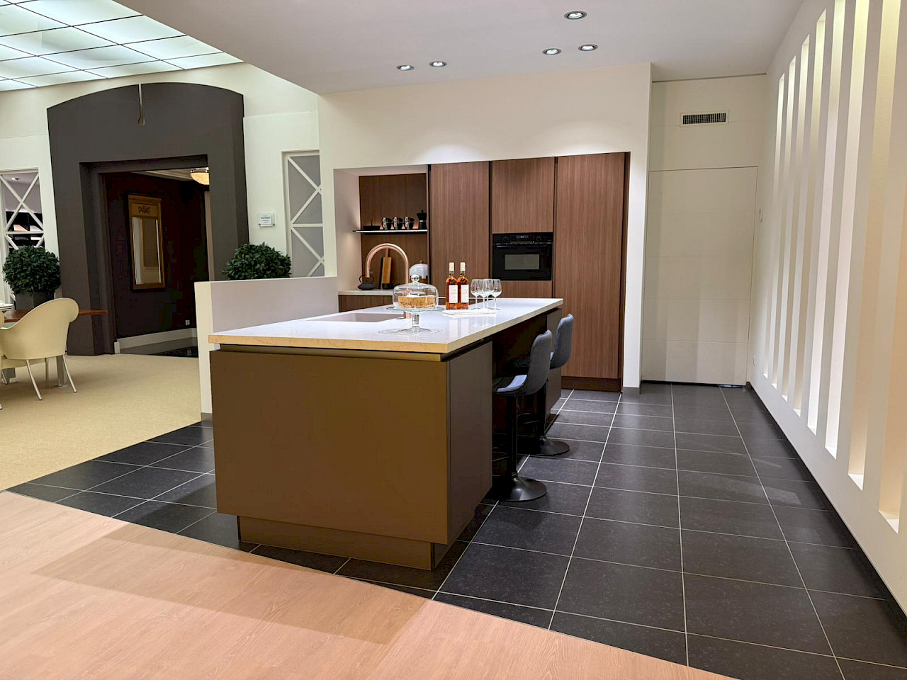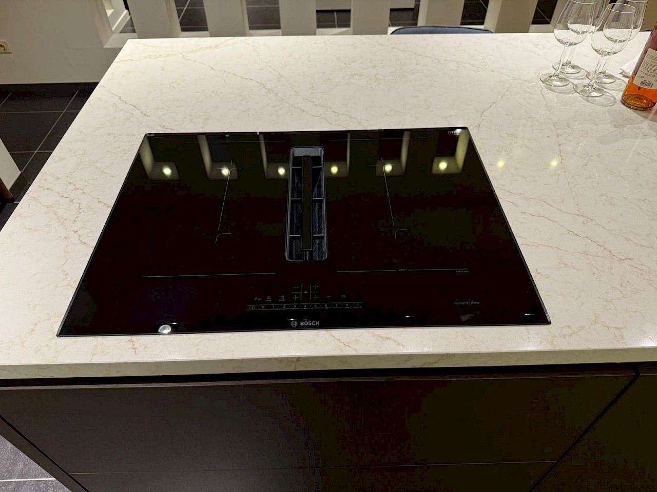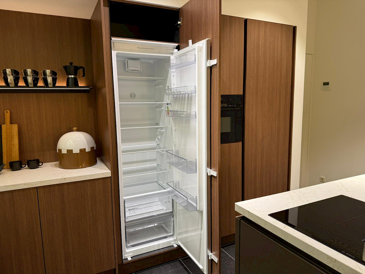 Inclusief: Bosch koelkast, Bosch combimagnetron, Bosch inductiekookplaat met afzuigsysteem, Bosch vaatwasmachine, Novy Shelf