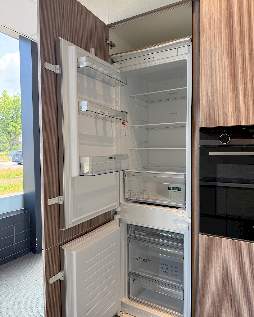 Inclusief: Siemens koel/vriescombinatie, multifunctionele oven, vaatwasser, inductiekookplaat, wandafzuigkap, ledverlichtingsset