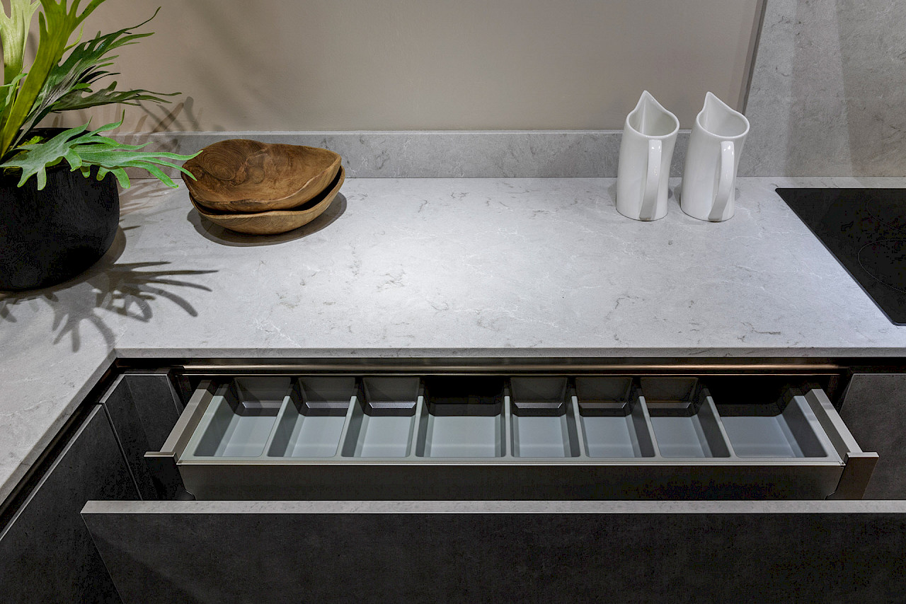 Keukenblad: Composiet in de kleur Bianco Drift gepolijst