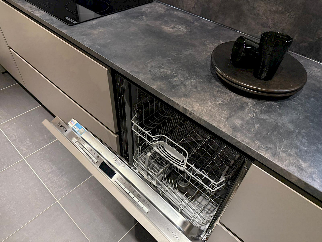 Inclusief: Bosch koelkast, Bosch combimagnetron, Bosch inductiekookplaat, Bosch wandafzuigkap, Bosch vaatwasmachine XXL, LED verlichtingsset Lux